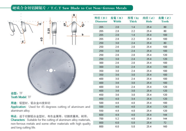 硬质合金切铝圆锯片